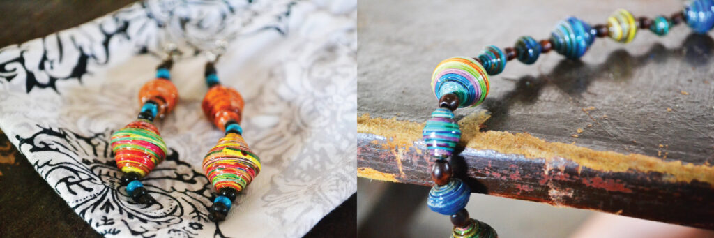 Sure, I have done paper beads before but never like this. See the quality for yourself in the images below. I have just started with the group but I am already super proud of all of the progress they have made and I am excited to help take them to the next level. We are always taking orders so let me know if you are interested in purchasing any items as Jessica has some back home with her in the States now to sell.