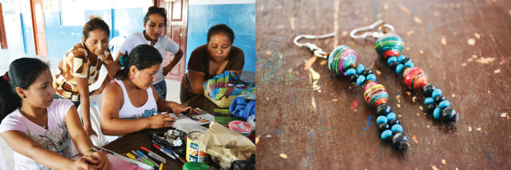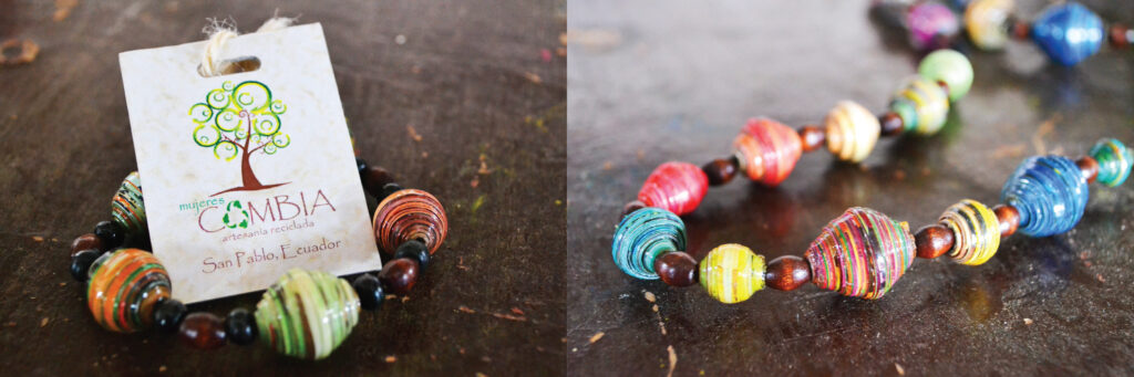 I have the good fortune of filling some very big shoes in a town near our site. A RPCV (Returned Peace Corps Volunteer – by one day!) Jessica worked with a women´s group at her site inspiring them to create beautiful pieces of jewelry out of magazine paper. They call themselves Mujeres Cambia (Women Change) and they are phenomenal.
