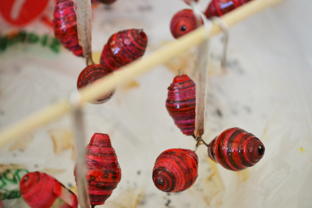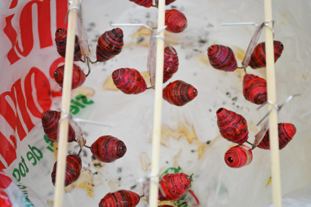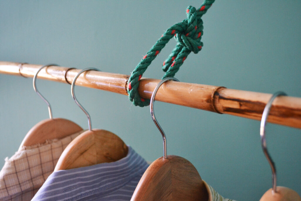 Materials used: A piece of cane found during a recent beach clean-up, varnish, rope, and two eye hooks.