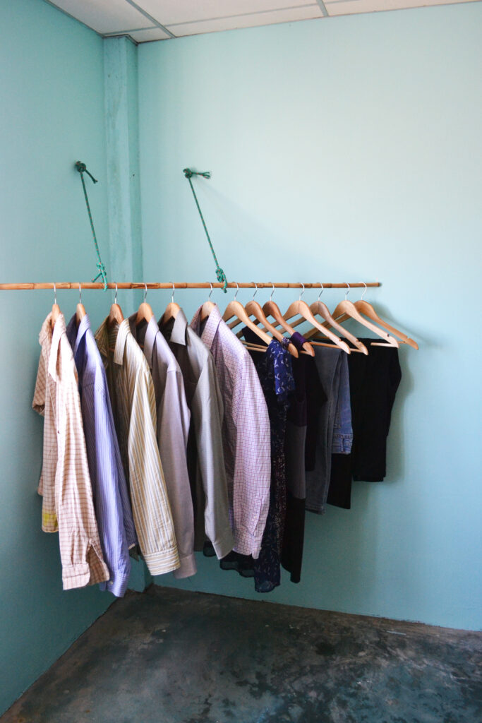 AAn example: we couldn’t run out to Bed, Bath & Beyond or Ikea to buy a shoe rack so Paul repurposed some old wooden shelves and the half-used buckets of paint we had lying around the house to create a shoe rack. Does it work? Of course it does. Did it cost anything? Nope. Does it look as good as the stainless steel one we would have bought in our old life in NYC? No. Actually, I think it looks better. Why? Because it has personality, it’s better for the environment, it gives little used items a new place to be, and above all it’s functional.