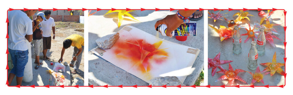 We used red and yellow spray paint.