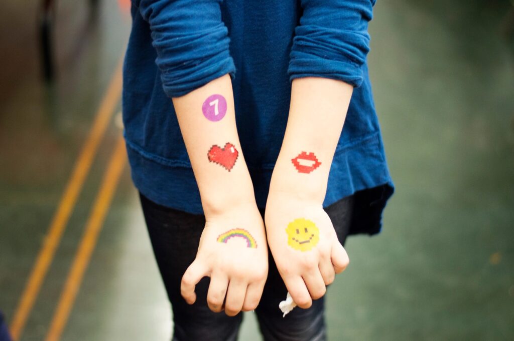 - Subway-themed and pixelated temporary tattoos